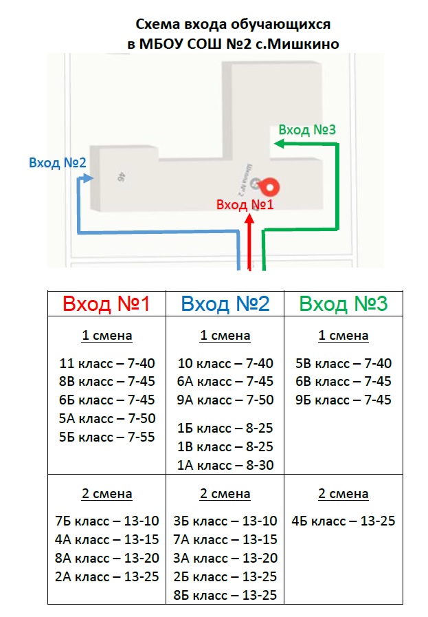 Схема входа обучающихся в МБОУ СОШ №2 с.Мишкино